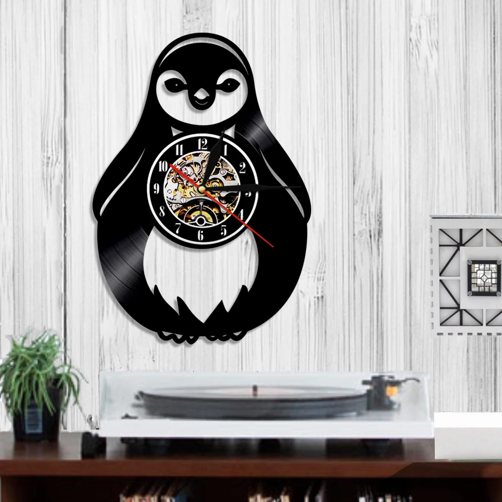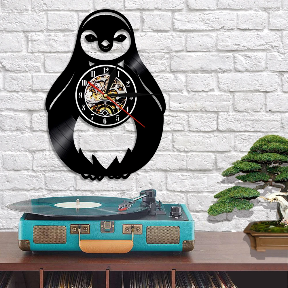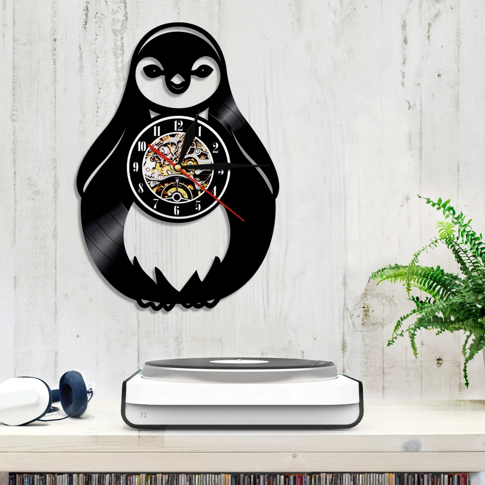Creative Cute Penguin Baby Vinyl Record Wall Clock