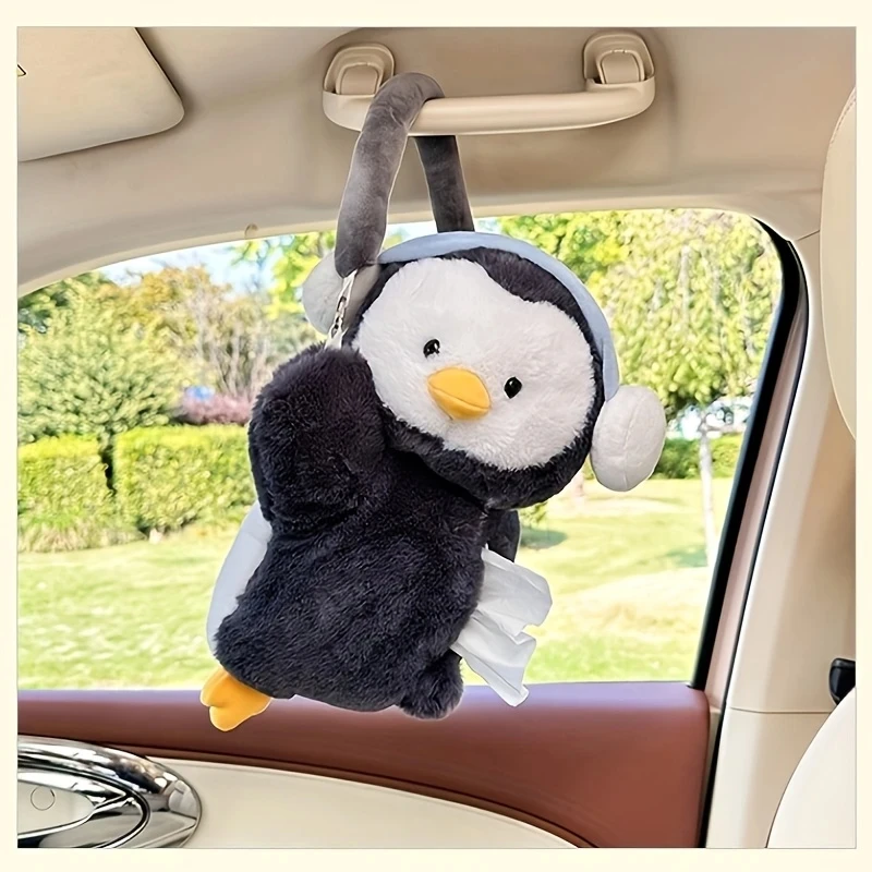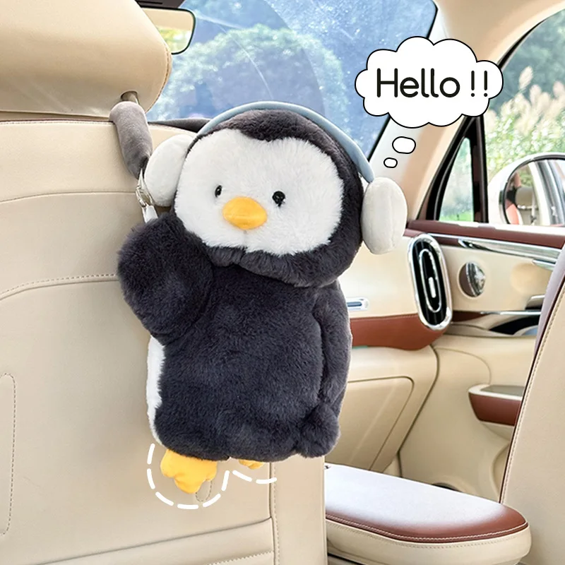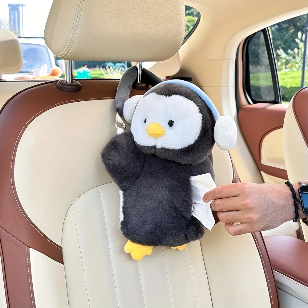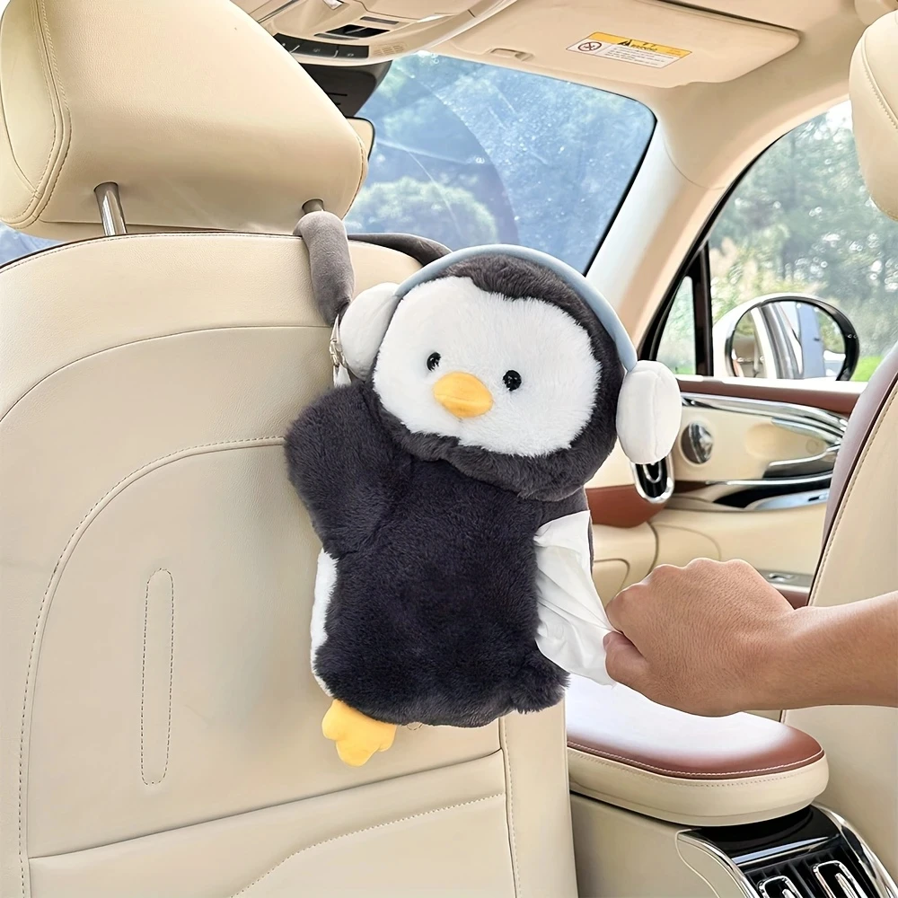 Cartoon Car Tissue Box Plush Doll Cute Penguin Car Seat Hanging Tissue Box Car Tissue Bag