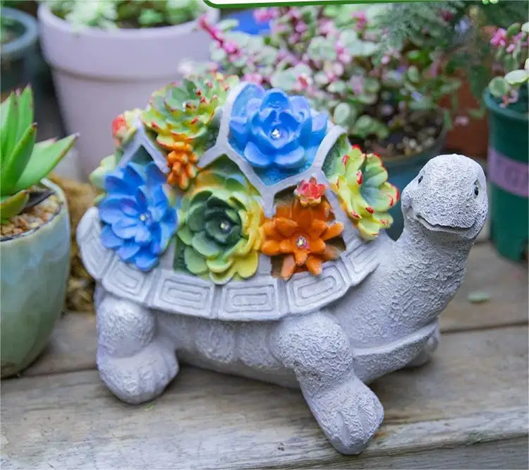Solar Garden Outdoor Statues Turtle with Succulent and 7 LED Lights Lawn Decor Tortoise Statue for Patio, Balcony Yard Ornament |